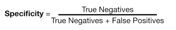 우리의 예에서 특이도는 실제로 심장 질환이 없는 사람 중에 올바르게 분류된 사람들의 비율이다.